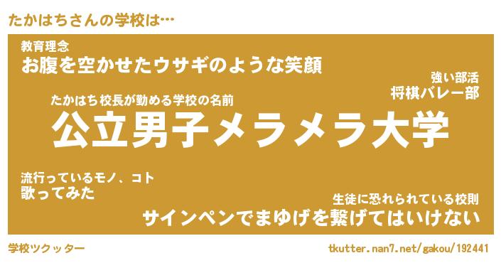 | ヘコむあだ名 | 『たかにー』『酢こんぶ』『たか太郎』 |