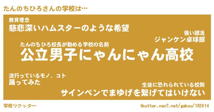 | ヒーロー風カッコイイあだ名 | 『スーパータンノチヒロ』『天弓騎士タン』 |