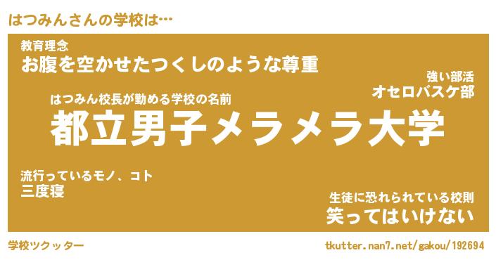 | ヒーロー風カッコイイあだ名 | 『スーパーハツミン』『銀牙騎士ハツ』 |