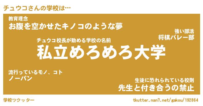 | ファンタジー風あだ名 | 『チュフェル』『エターナルチュウコー』 |