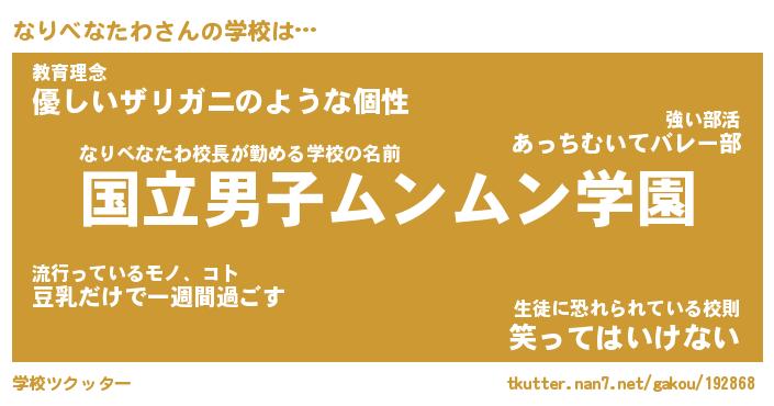 | 男性向けラノベタイトル風あだ名 | 『なりべなたわの憂鬱』 |