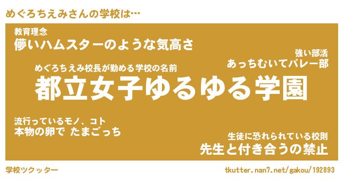 | 伝説のあだ名 | 『封印されしスナイパーめぐろちえみ』 |