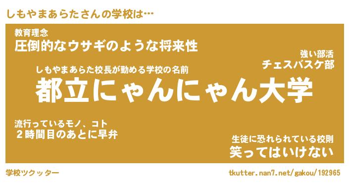 | 男性向けラノベタイトル風あだ名 | 『しもやまあらたの憂鬱』 |