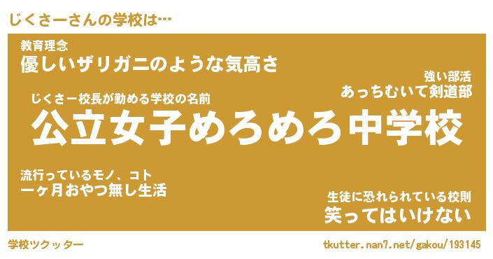 | 意味不明あだ名 | 『ペロリンじくさー』『永久保存じくさー』 |