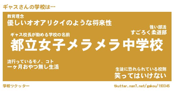| ヘコむあだ名 | 『ギャにー』『つくし』『ギャを』 |