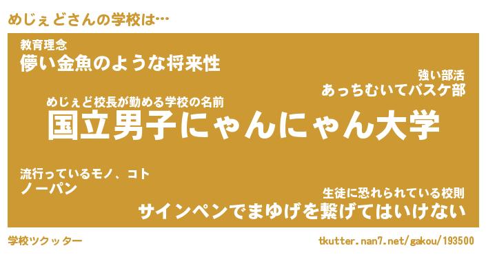 | ヘコむあだ名 | 『めじもー』『なまこ酢』『めじお』 |