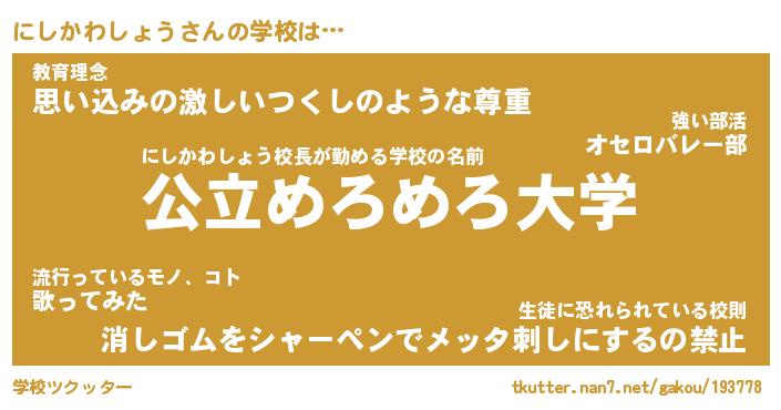 | 肩書あだ名 | 『にしかわしょう御曹司』 |