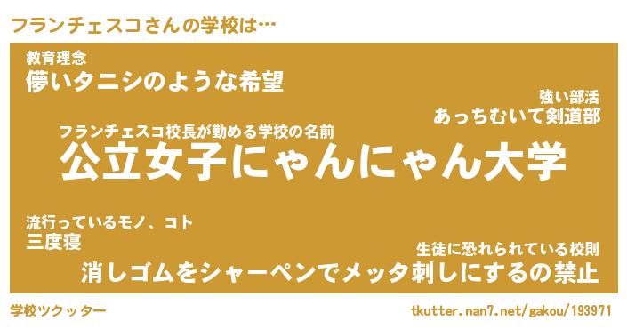 | 女子向けラノベタイトル風あだ名 | 『誰かこのフランチェスコを説明してください! ~契約から始まるウェディング~』 |