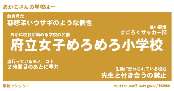 | 意味不明あだ名 | 『ペロリンあかに』『あかにフォーエバー』 |