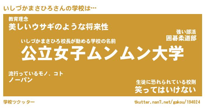 | ピコ太郎風あだ名 | 『イコ四郎』『ピイ六郎』『イシ一郎』 |