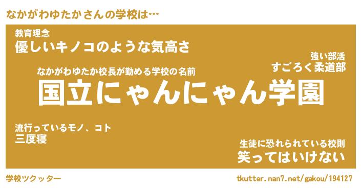 | 男性向けラノベタイトル風あだ名 | 『なかがわゆたかの憂鬱』 |