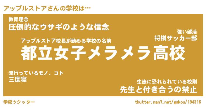 | 意味不明あだ名 | 『ペロリンアップルストア』 |