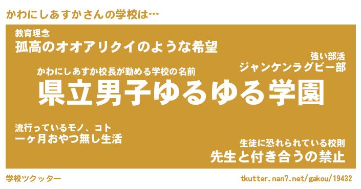 | 女子向けラノベタイトル風あだ名 | 『かわにしあすか姫と円卓の騎士』 |