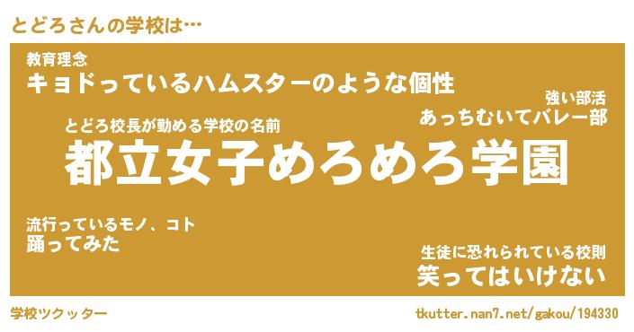 | ヘコむあだ名 | 『とどっふぃ~』『つくし』『とどお』 |
