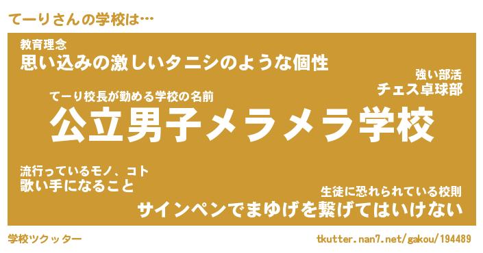 | 男性向けラノベタイトル風あだ名 | 『てーりの憂鬱』 |