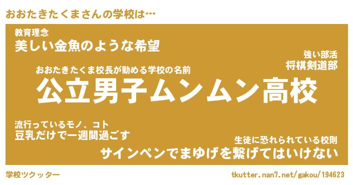 | 男性向けラノベタイトル風あだ名 | 『おおたきたくまの憂鬱』 |