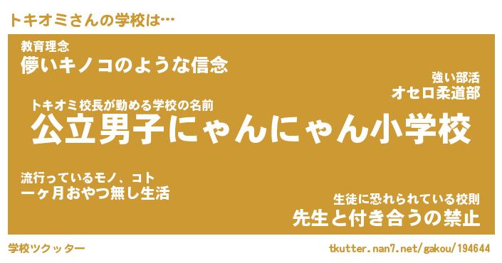 | ファンタジー風あだ名 | 『トキフェル』『エターナルトキオミー』 |