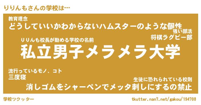 | 男性向けラノベタイトル風あだ名 | 『りりんもの憂鬱』 |