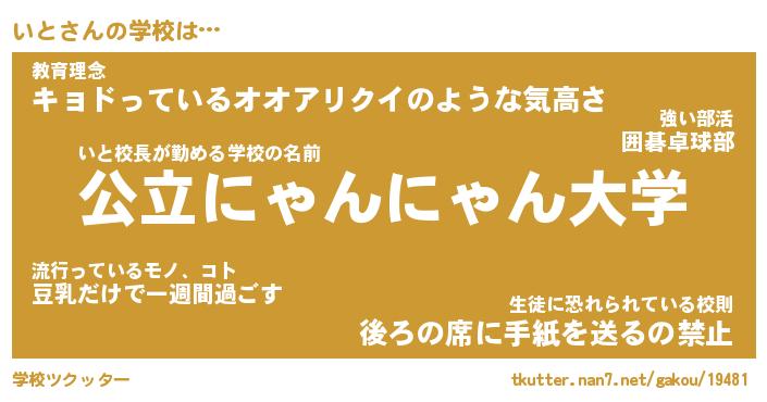 | ピコ太郎風あだ名 | 『イコ四郎』『ピイ一郎』『イト八郎』 |