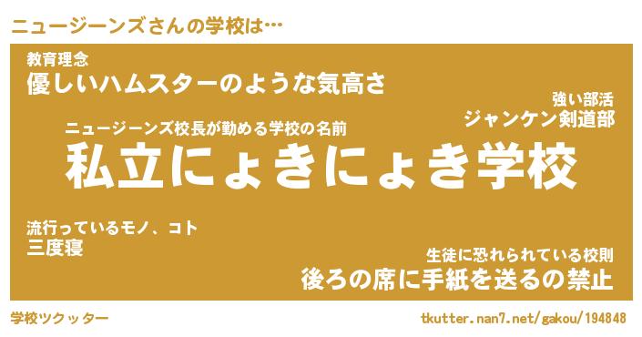 | ヘコむあだ名 | 『ニュにゅー』『豆乳』『ニュっ子』 |