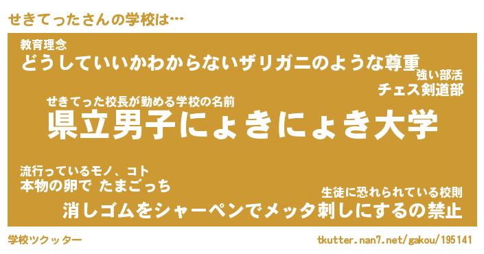 | 男性向けラノベタイトル風あだ名 | 『セキテッタアートオンライン』 |