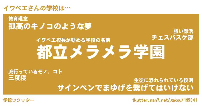 | 意味不明あだ名 | 『ペロリンイワベエ』『永久保存イワベエ』 |