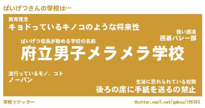 | 意味不明あだ名 | 『ペロリンばいげつ』『永久保存ばいげつ』 |