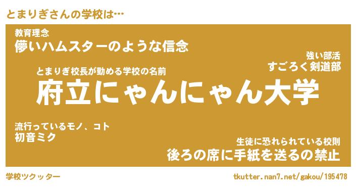 | 男性向けラノベタイトル風あだ名 | 『とまりぎの憂鬱』 |