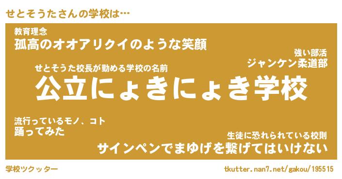 | 男性向けラノベタイトル風あだ名 | 『せとそうたの憂鬱』 |