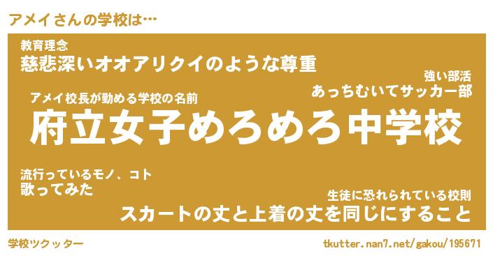 | 意味不明あだ名 | 『ペロリンアメイ』『アメイフォーエバー』 |