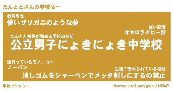 | 男性向けラノベタイトル風あだ名 | 『たんととの憂鬱』 |