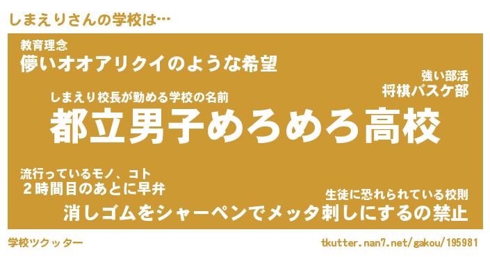 | 意味不明あだ名 | 『ペロリンしまえり』『永久保存しまえり』 |