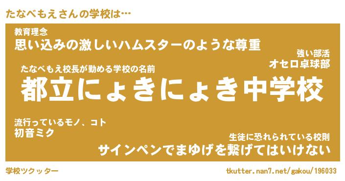 先生 たなべもえ先生が勤める学校名『市立もふもふ中学校