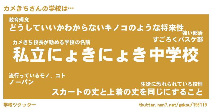 | 意味不明あだ名 | 『ペロリンカメきち』『永久保存カメきち』 |