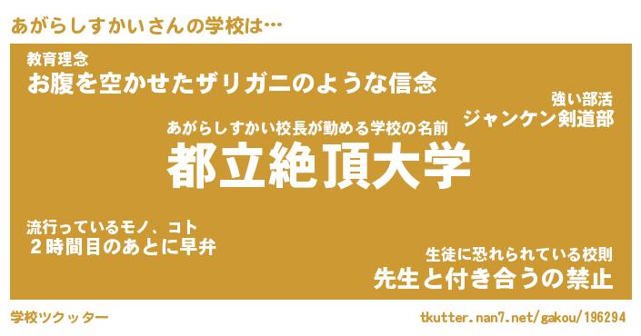 | 女子向けラノベタイトル風あだ名 | 『(仮)あがらしすかいのやんごとなき事情』 |