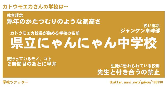 | 胡散臭い通販商品みたいなあだ名 | 『必ず成功する水晶球…その名も「カトウモエカ」』 |