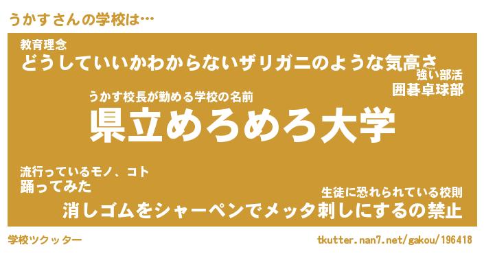 | 男性向けラノベタイトル風あだ名 | 『うかすの憂鬱』 |