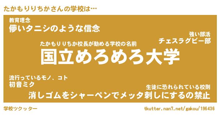 | 伝説のあだ名 | 『伝説のスナイパーたかもりりちか』 |