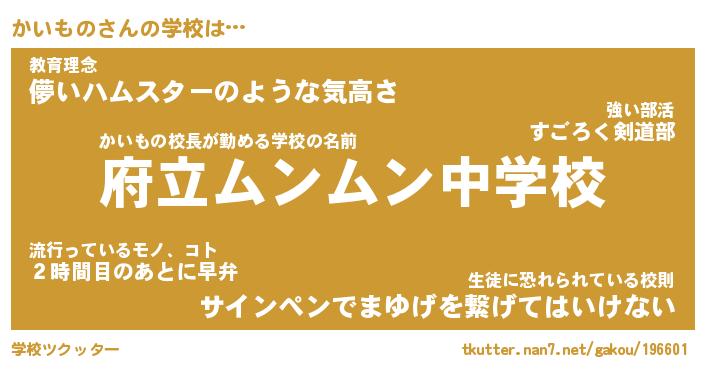 先生 かいもの先生が勤める学校名『市立もふもふ中学校