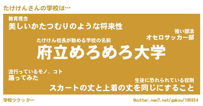 | 意味不明あだ名 | 『ペロリンたけけん』『永久保存たけけん』 |