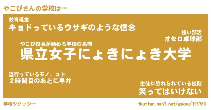 | ヘコむあだ名 | 『やこにゅー』『豆乳』『やこっちょ』 |