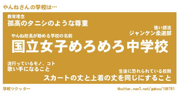 | 意味不明あだ名 | 『ペロリンやんね』『やんねフォーエバー』 |