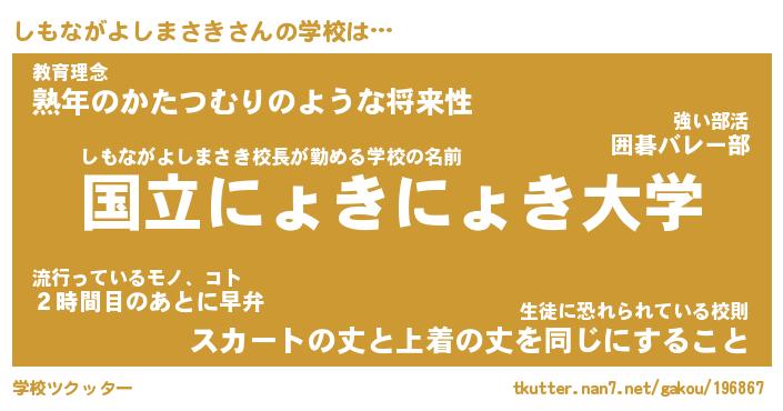| 男性向けラノベタイトル風あだ名 | 『しもながよしまさきの憂鬱』 |