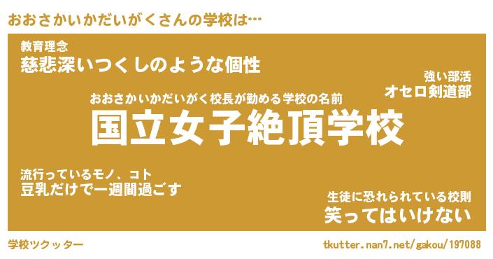 | 女子向けラノベタイトル風あだ名 | 『誰かこのおおさかいかだいがくを説明してください! ~契約から始まるウェディング~』 |