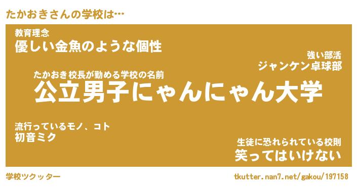 | ファンタジー風あだ名 | 『タカフェル』『エターナルタカオキー』 |