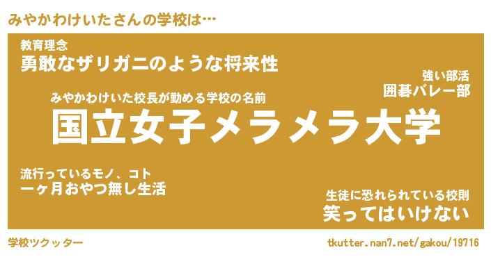 | ヘコむあだ名 | 『みやにー』『なまこ酢』 |