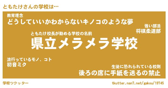 | 男性向けラノベタイトル風あだ名 | 『ともたけの憂鬱』 |