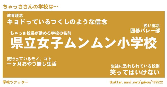 | 肩書あだ名 | 『ちゃっさ店長』『ちゃっさ総理大臣』 |
