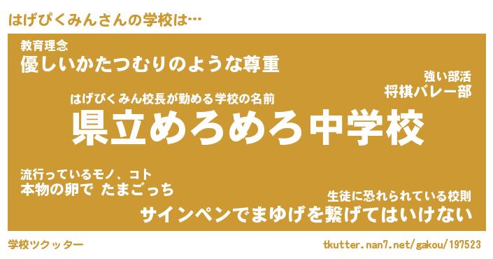 | ピコ太郎風あだ名 | 『ハコ十郎』『ピハ二郎』『ハゲ史郎』 |