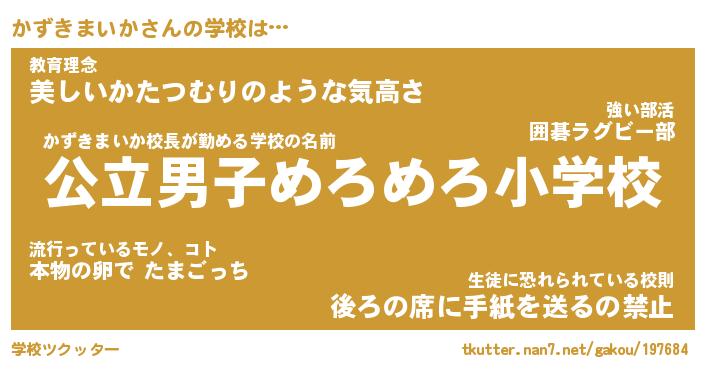 | ヒーロー風カッコイイあだ名 | 『スーパーカズキマイカ』『黄金騎士カズ』 |